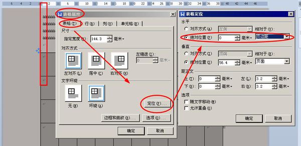 2、表格与文字的对齐,右键点表格左上角的十字星,点表格属性,定位,绝对位置为0,右边选”页边距“,也可以设置跟页边距一样的数字,再选页面。