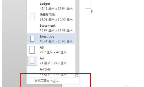 第三步,点击纸张大小会出现好多供你选择的纸张大小,如果你想自己设置大小,那么,请选择左后“其他纸张大小”