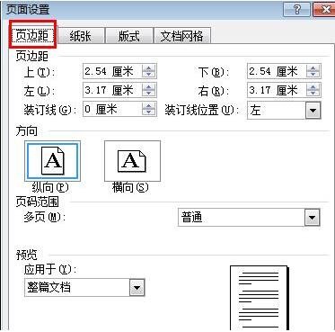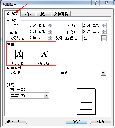 在“页边距”选项卡,可以调整纸张方向,
