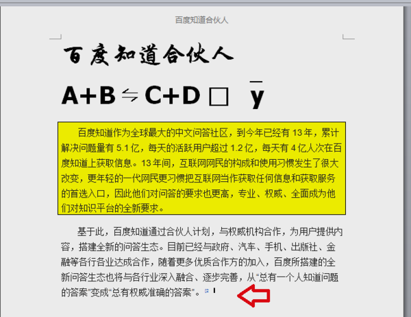 2、然后将光标放置在某个页面内容的最后,如下图所示。