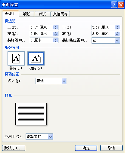 WORD2003 如何在众多纵向页面中设置单页横向页面