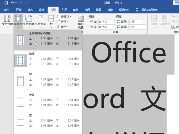 5、此时我们返回word文档界面,再次点击页边距,可以看到现在的页边距单位,默认已经以厘米显示了。