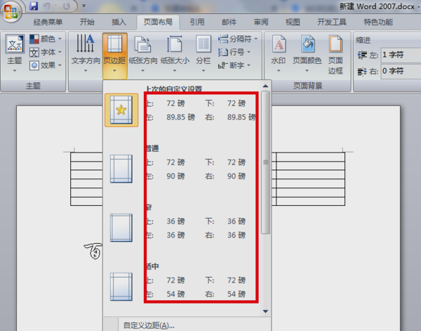 4.在弹出的菜单中可以选择自己需要的页边距;