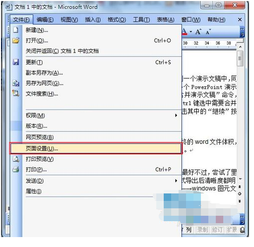3、然后单击“文件”→“页面设置”。
