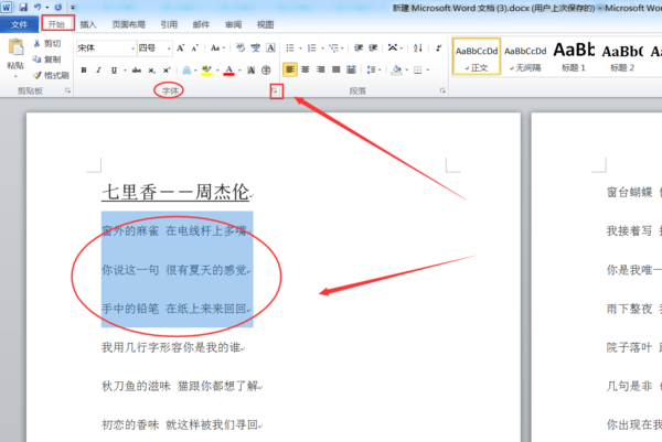 1、选择需要调整文字间距的文字,单击开始选项卡,单击字体功能组右下角的箭头