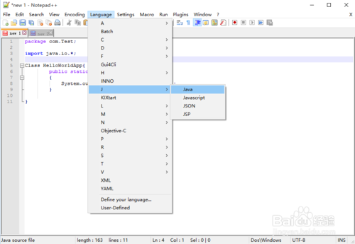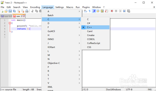 将代码复制到 Notepad++。在菜单【Language】中选择编程语言的种类以格式化代码的样式。如下图所示: