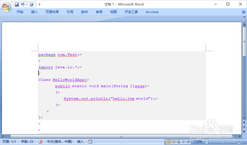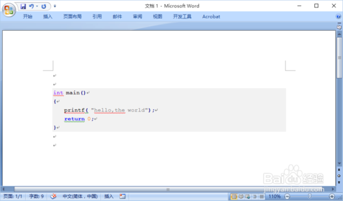 在Word里粘贴前面在Notepad++中复制的代码。然后选择这段文字的底纹为浅灰即可,效果图如下: