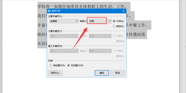 4、设置好排序方式后,点击确定即可完成对文字的排序操作。