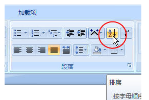 在Word 2007中,单击功能区中“开始”选项卡,在“段落”组中单击“排序”命令,然后在弹出的对话框中单击“确定”即可。