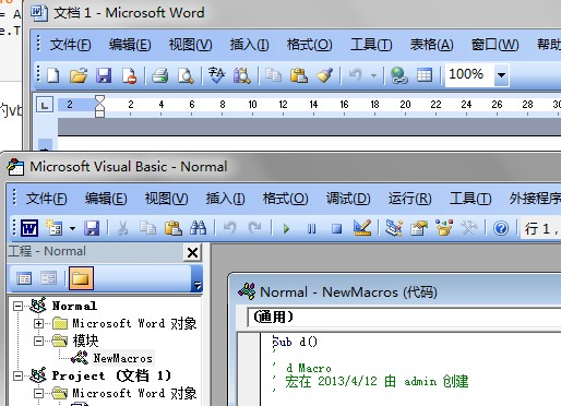 安装office的时候不知道安装了vba部分没有。但在word里按住alt+f11,已经出来这个: