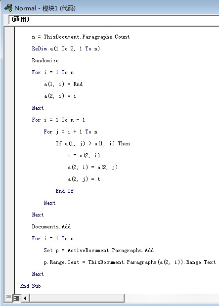 然后按f5运行.或者回到word里按alt+f8运行test以后,是新建了一个WORD文档。然后是怎么样让段落排序打乱?