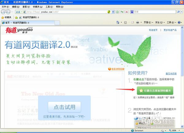 1、可以使用第三方插件,例如有道翻译,它就是一个书签,浏览英文网站的时候打开就可以使英文变中文;