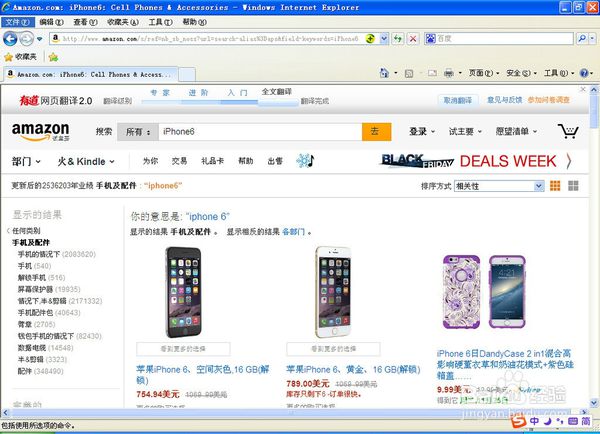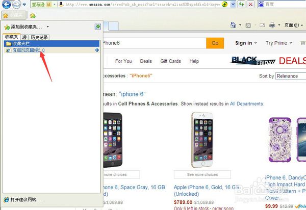7、打开美国亚马逊网站后,点击刚才收藏的有道网页翻译2.0书签;