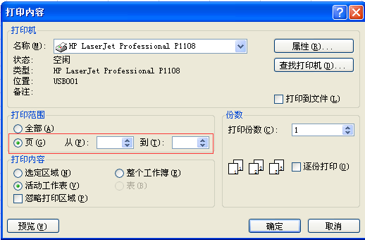 (1)在页码范围输入框中输入需要打印的页的页码;