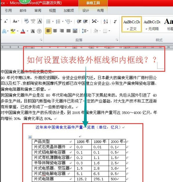 在word中怎样设置表格外框线和内框线?