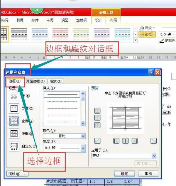 3、选择设计--边框和底纹