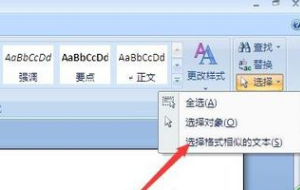 4、如果想自定义自己的标题格式,则可以选择【开始】-【选择】-【选择格式相识的文本】,这样之前设置的标题就会优先全部被选中。
