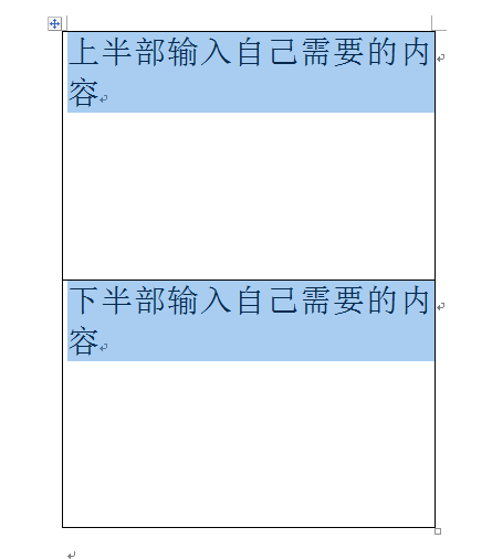 word自身没有提供设置为页面上下二份的功能,但是可以通过表格手动来现实这个功能,具体操作如下: