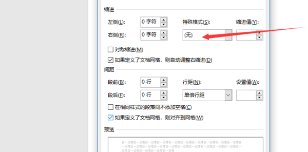 5、下拉特殊格式选择首行缩进。