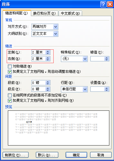 word中对称缩进什么意思。