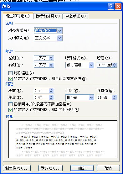 word中如何设置右缩进间距为4