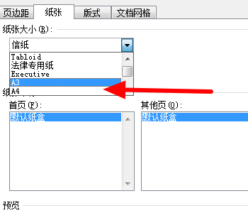 4、之后我们点击打开纸张中的“纸张大小”,选择“A4”,之后回车确定即可。