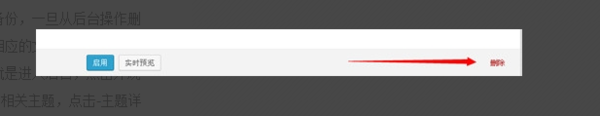 1,删除主题之前最好备份,一旦从后台操作删除主题,在主机上相应的文件夹也会被删除,较为方便的方法就是进入后台,点击外观--主题后,鼠标移到相关主题,点击-主题详情,右下角有红色的“删除”点击即删除主题。