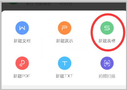 3、点击以后即可在页面下方弹出新建office的选项,点击“新建表格”选项。