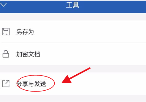 5、如果要把该文档发送给好友,还是在“小扳手”选项里进行发送,找到“分享与发送”,就可以把该文档发送给好友了。