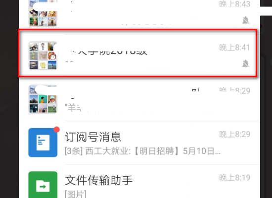 2、在随后打开的界面中找到需要复制文字的群或个人,并点击。
