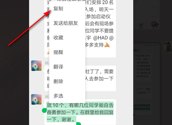 3、在随后打开的聊天界面中复制需要编辑的内容。