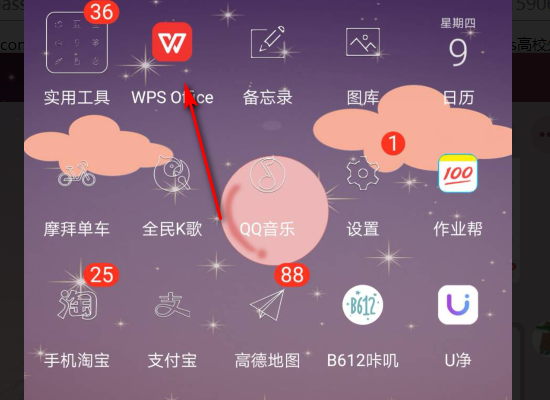 4、随后回到手机界面,在手机界面中找到WPS Office,并点击打开。