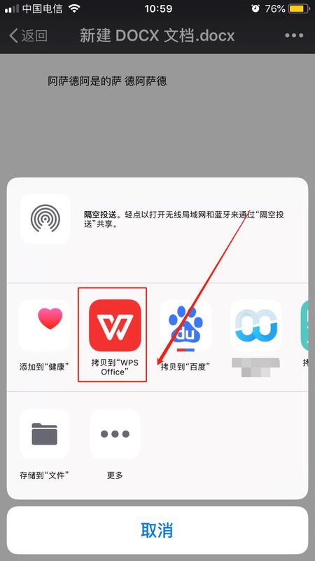 微信收藏的文档可以“WPS Office”APP软件在手机上编辑,以iPhone6为例,方法如下所示: