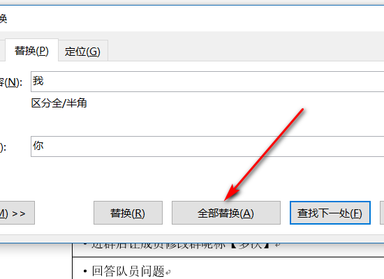 再回到替换对话框中,点击“全部替换”即可完成上述要求。