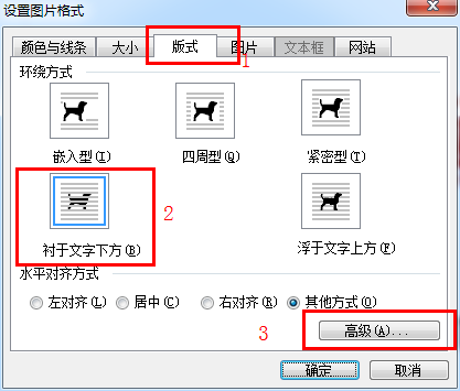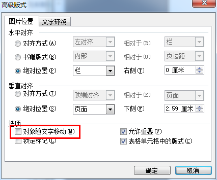 图片右键----设置图片格式----板式----衬于文字下方----------高级------去掉“对象随文字移动”前面的对号
