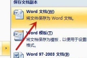 3、在弹出的菜单中选择保存的格式,这里点击“Word 文档”(图中红色箭头所指)
