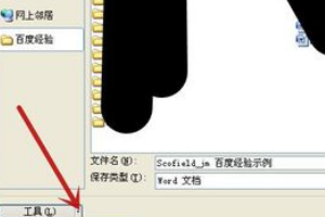 4、在弹出的对话框中,点击“工具”旁的下拉箭头(图中红色箭头所指)
