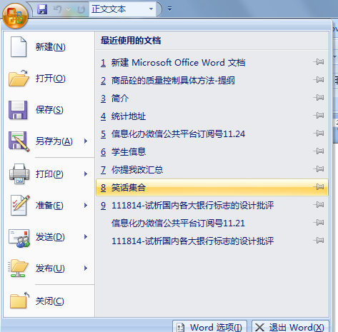 打开word,点击左上方office图标按钮,看最近使用的文档里面有没有