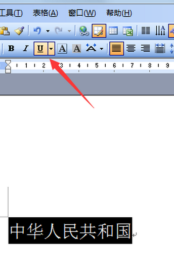 1、选中要加下划线的文字,鼠标点击下划线符号;
