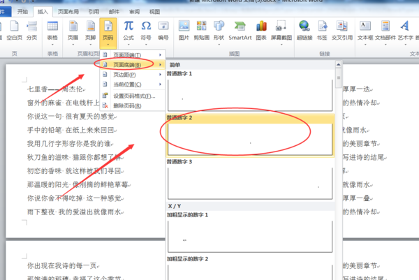 2、找到并击“页码”,然后在其下拉选项中选择一个页码样式即可。