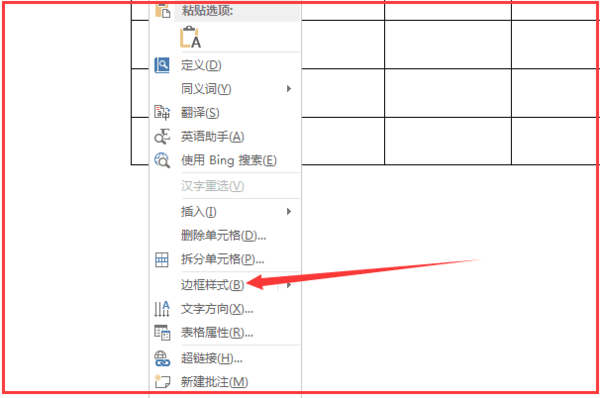 1、首先在word页面中选择你要隐藏表格线的表格,接着鼠标右击表格,然后在弹出来的页面选择【边框样式】。