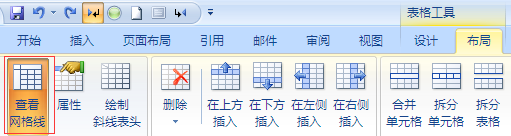 2、单击表格工具布局----查看网格线按钮即可,如图所示。