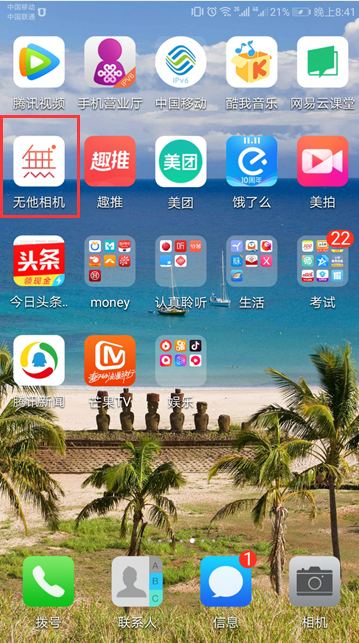 1、首先在手机上下载并安装“无他相机”应用程序,然后点击打开。