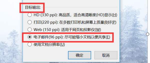 5、点击过后就会弹出一个对话框,在对话框下半部分找到”目标输出“,并选中第四个”电子邮件“,点击右下角确认,这样就完成了World的压缩!