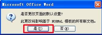 点击“默认”后,将弹出“是否更改页面的默认设置”提示,点击“是”,即可,如下图所示:
