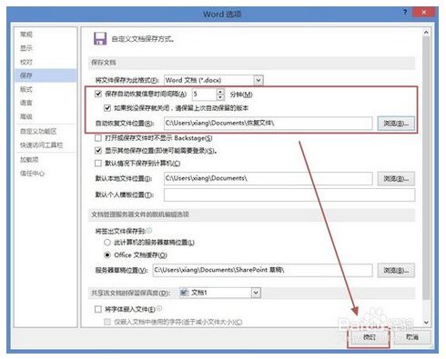 4 ,默认情况Word2013设置了自动恢复。如果没有设置自动恢复功能或修改自动恢复功能,可以这样操作,将“保存自动恢复信息时间间隔”复选框勾选,并设置合理的时间间隔。这里建议将“如果我没保存就关闭,请保留上次自动保留的版本”复选框勾选