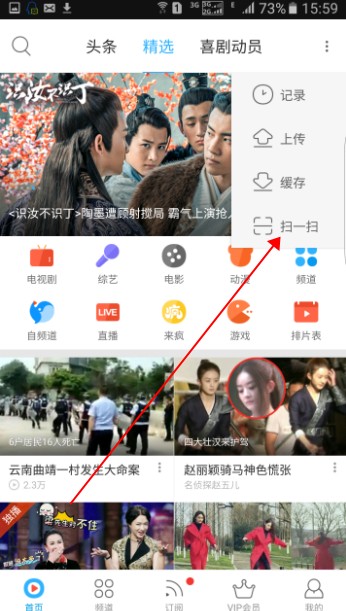 手机进入优酷客户端,点击右上角的三个小点对准二维码扫一扫即可。