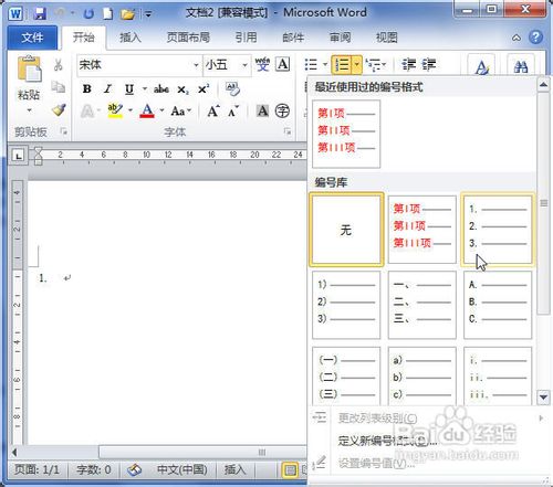 我们在列表中选择一种符合实际需要的多级列表编号格式。