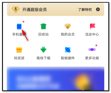 4、进入界面以后,再点击手机备份的按钮;