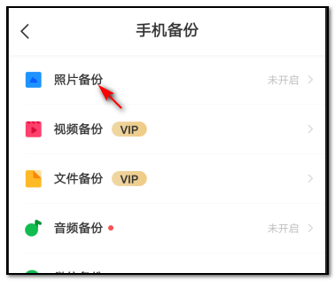 3、列表中,选取“照片备份”,点击进入。